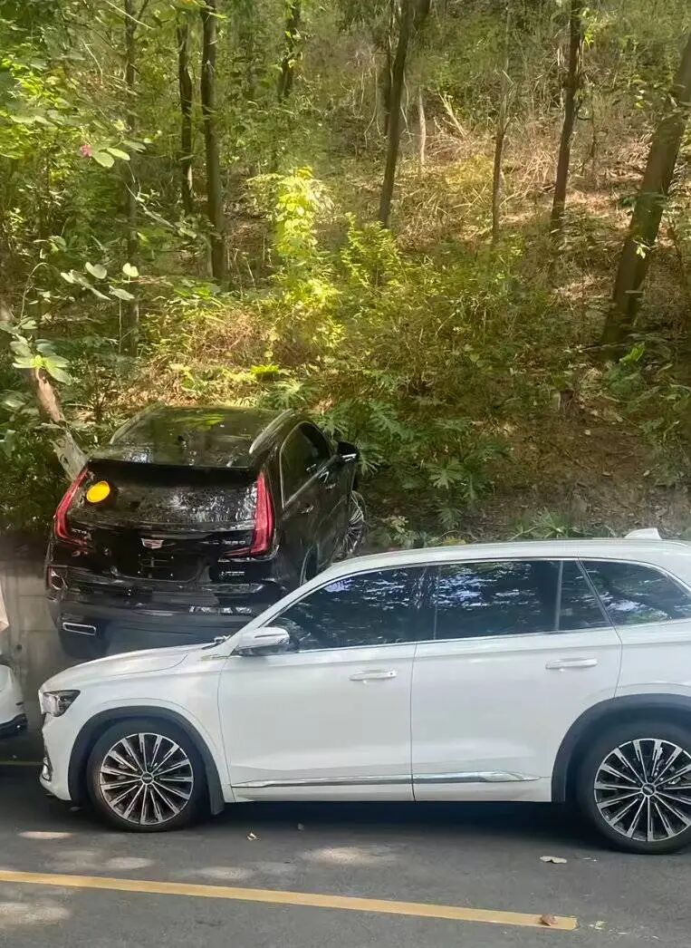 事发现场,涉事车辆在道路边坡上“倒立”。图据网友