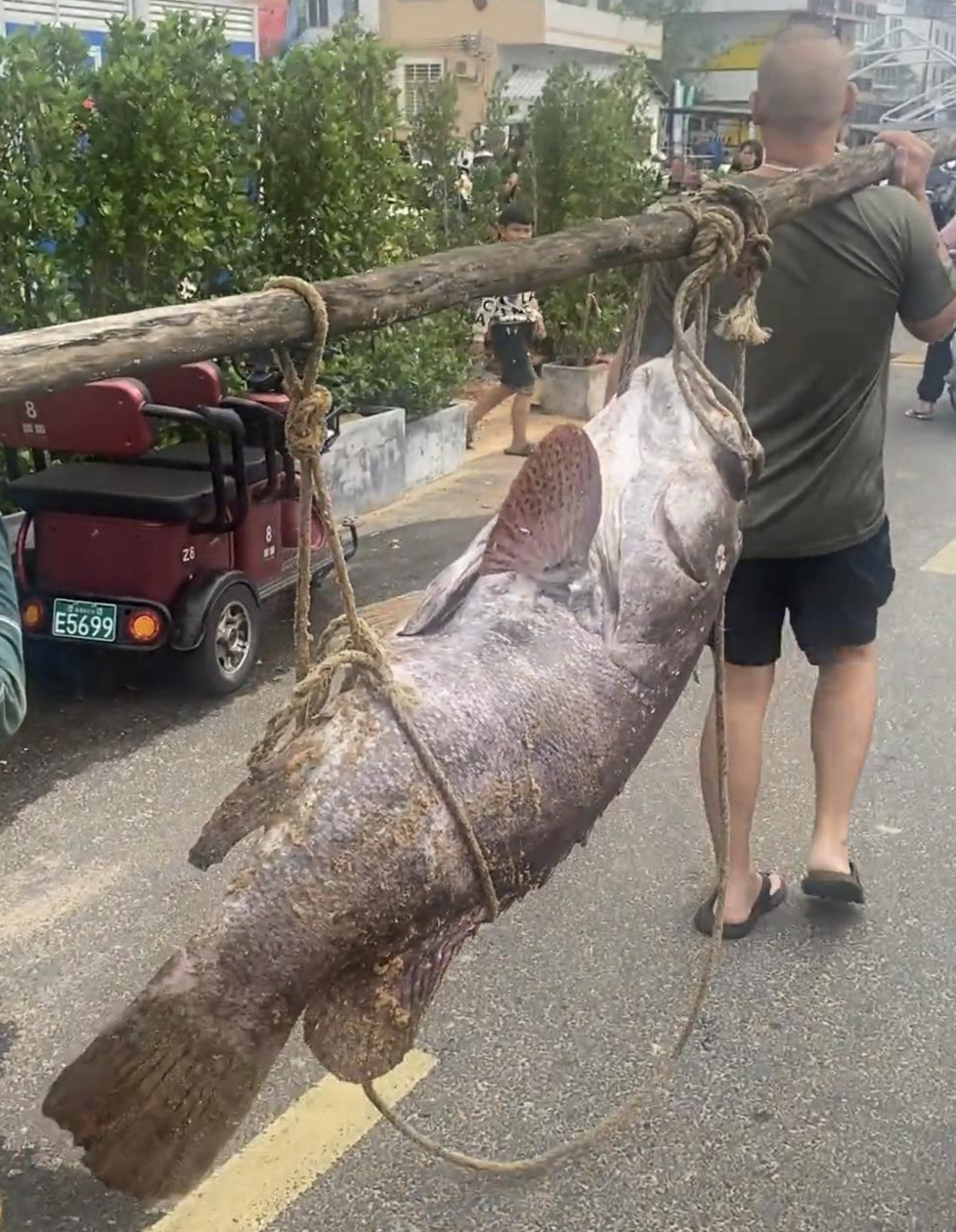 海口现 “巨型石斑”:个头赛猪,几人合力才抬动