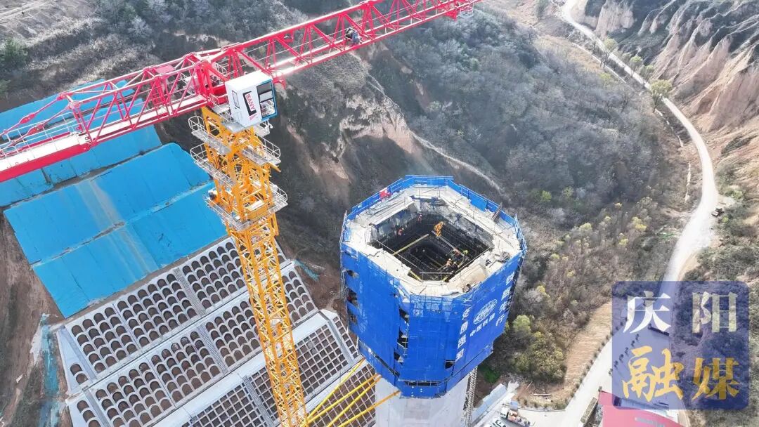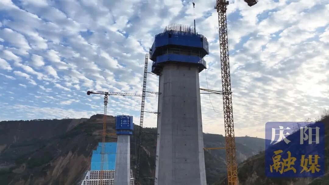 平庆铁路建设取得重大进展 稠水沟特大桥主墩封顶