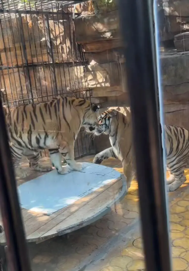 该工作人员发来狮子和老虎的视频,视频显示,狮子在睡觉,公母一对圈养,老虎在活动,体型相对正常。“网友发的都是陈年旧图,也理解大家保护动物的心情,但突然群起而攻之,我们也很蒙。”他表示,虐待动物是从来没有的谣言,希望大家理智辨别网络信息。