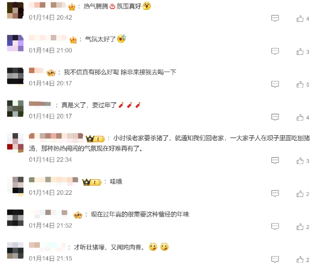 有媒体表示,杀年猪、吃刨猪汤,是西南乡村腊月里的寻常仪式,也是刻在一代代人记忆里的年味符号。更重要的是,这种记忆关联着亲情、乡情、邻里情,关联着收获的喜悦和分享的快乐。在物质丰裕的今天,恰恰是这些朴素的情绪价值,最是难得。