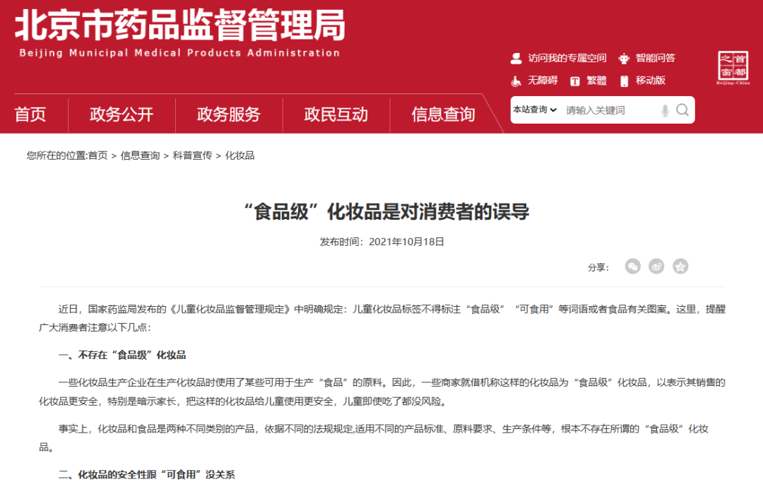 北京市药品监督管理局官方网站相关信息截图
