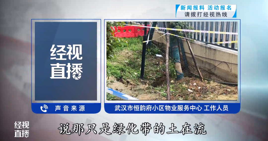 武汉一小区地面塌陷现大坑,距楼体不到10米引居民担忧,物业:塌陷原因系污水管道破损,不影响建筑结构;多部门介入