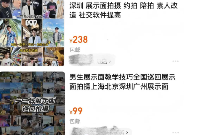 除了相对便宜量大的实况图包,平台上还有一种名为“展示面定制”的付费服务。商家解释,所谓的“展示面”,就是通过打包日常照片搭配定制化的旅游照、商务照摆拍,将服务对象包装成富豪或成功人士,方便恋爱交友或商业活动。