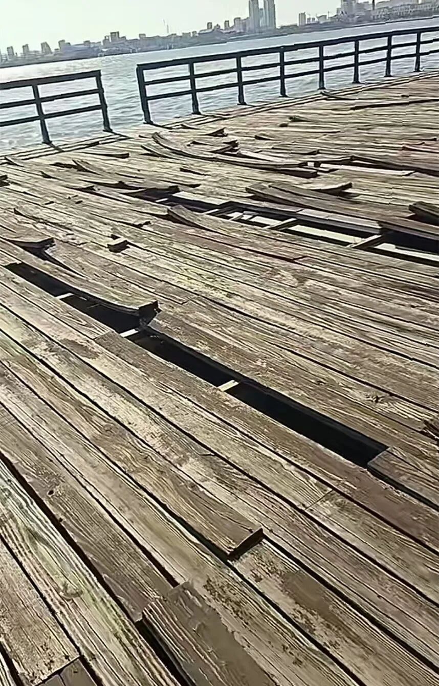 山东一滨海平台木板翘起存安全隐患,当地:现场已被围挡无人使用,已派人去现场核实