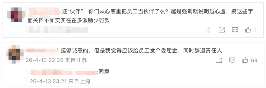 在员工侧,通过展现成立员工权益保障专项小组、开放违规线索征集、退还不合理处罚等务实举措,在一定程度上安抚基层员工情绪、修复品牌信任。